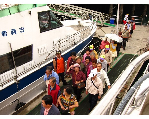 兩船停在泊船處等待客人到來